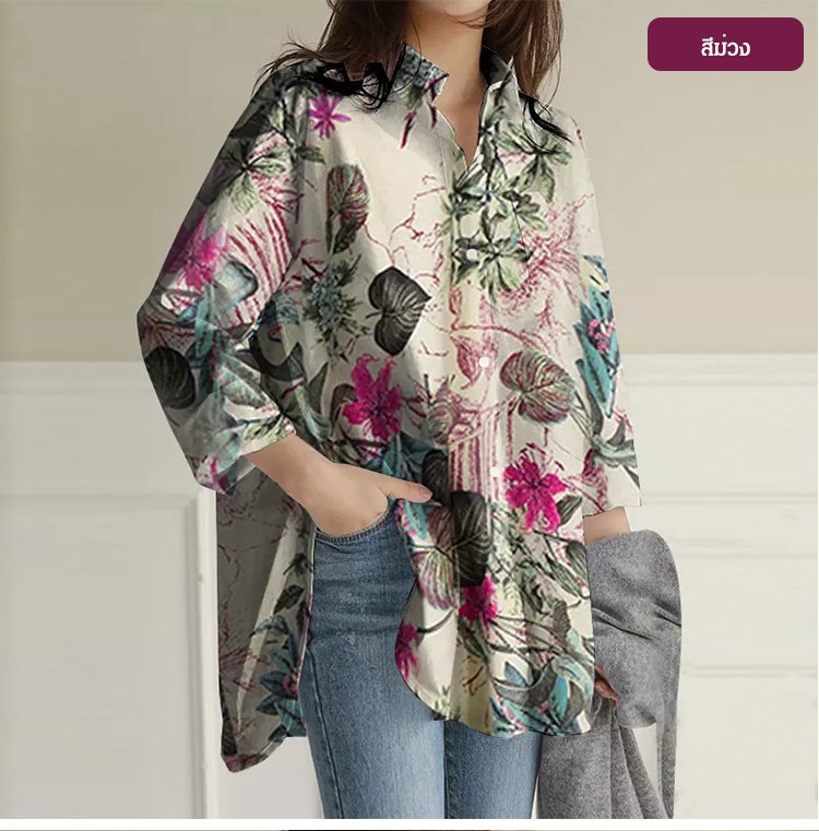 เสื้อยืดทรงหลวม พิมพ์ลาย
